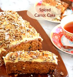 Super moist , spiced carrot cake is a must have for any tea party, available in loaf or round or bundt shape