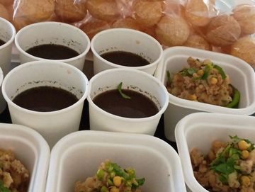 Spicy Tangy semolina puffs filled with tangy tamaring drink and spiced potato filling. Also known as Golgoppa or Panipuri in some parts of India, happens to be a pupoular street food . In Kolkata we call it Puchka. Also available Dahi Puchka.. Min