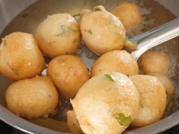 Golden fried potato patties made with chickpea flour seasoned with spices